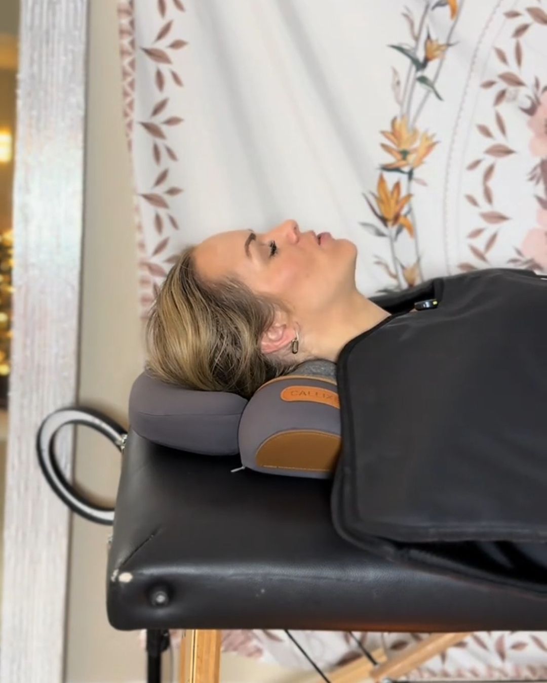 We recommend starting with 15 minutes to let your neck adjust. Over time, you can work your way up to a full session. For your reference, Thera Pillow’s gentle heat + massage + traction cycle runs for 30 minutes, which is usually the perfect amount of time to relax your neck and help restore its natural curve.